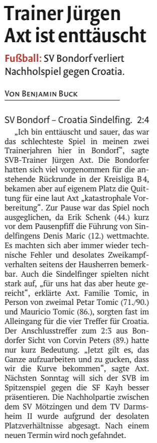 SV Bondorf – NK Croatia Sindelfingen 2:4 (1:1)